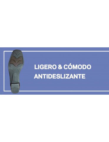 SEMELLE: En polyuréthanne bicolore à double densité et deux composants, antidérapant à un degré élevé, sur le sec et l’humidité, avec tacon de 3’5 cm.