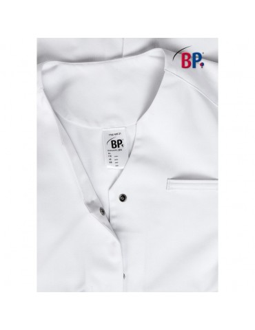 Manches 1/2, empiècements extensibles sous les aisselles et au niveau des épaules pour une liberté de mouvement maximale, encolure en V, patte à boutons-pression dissimulée, coutures de séparation pour une coupe seyante, 2 grandes poches latérales dont 1 avec poche pour bip, fente d'aisance au dos, passant pour badge