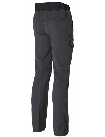 Ceinture en maille élastiquée, braguette zippée, 2 poches italiennes, genoux préformés, 1 poche cuisse avec rabat pressionné et 1 compartiment stylo, 1 poche arrière passepoilée..