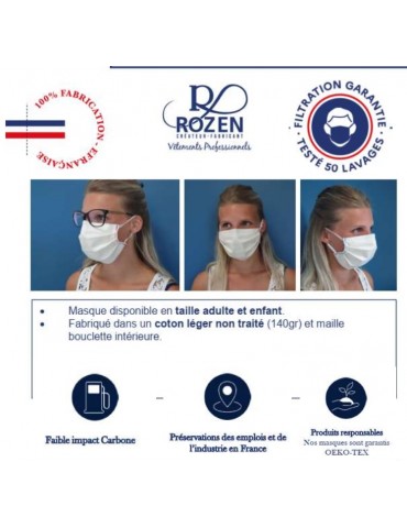 Lot *2 MASQUE 5 ROZEN tissus 50 lavages Cat 1